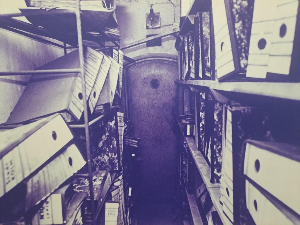 ((Foto 2)) Als Aktenlager genutzte ehemalige Zelle im EL-DE-Haus Köln. Foto von Gernot Huber (März 1979), abfotografiert im Januar 2025.