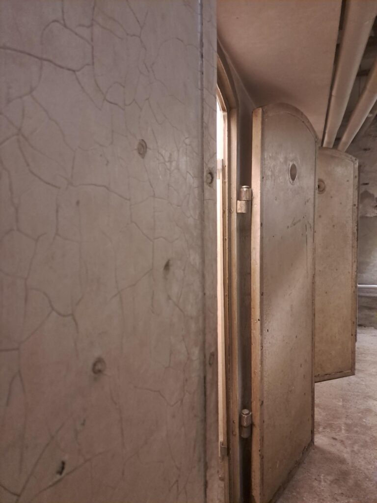 ((Foto 3)) Anfang der sechziger Jahre „besucht“ Sammy Maedge den „Gestapo-Keller“. Detailaufnahme von Zellengang und Zellentüren (Zustand Januar 2025)